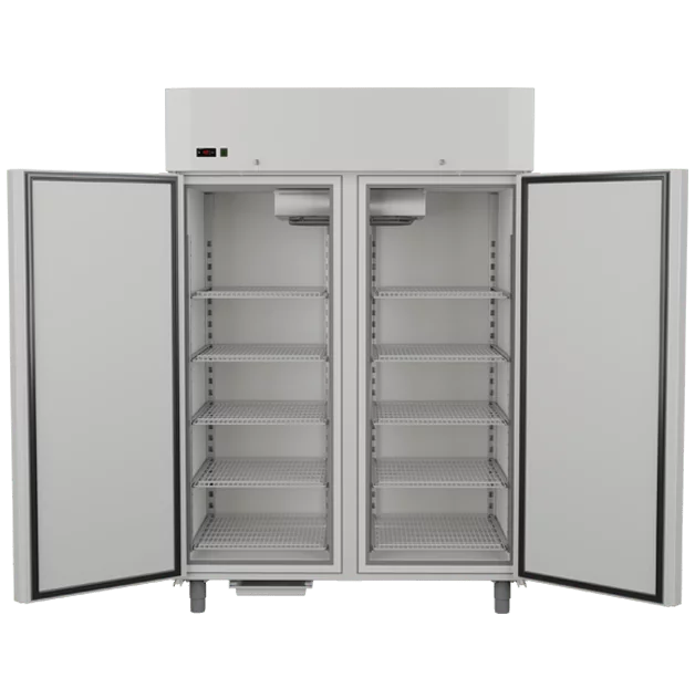 Морозильнa шафа ND140M — професійне холодильне обладнання, що найкраще підходить для виробничих кухонь/кулінарій, складських приміщень, магазинів та закладів громадського харчування. Містка та зручна в експлуатації. Найкращий вибір, коли йдеться про суто якісне зберігання продуктів. Великий об’єм двохдверної шафи допоможе зберігати велику кількість продуктів одночасно! Вона також комплектується електронним блоком керування, що контролює заданий температурний режим та функцію автоматичного відтавання. Внутрішня частина шафи виготовлена з металу з полімерним покриттям, а корпус залитий пінополіуретаном високої міцності, що гарантує відмінну термоізоляцію, герметичність, жорсткість та міцність конструкції. Комплектована шафа 10-ма полицями з можливістю регулювання, а також ніжками з налаштуванням висоти для зручного встановлення обладнання..